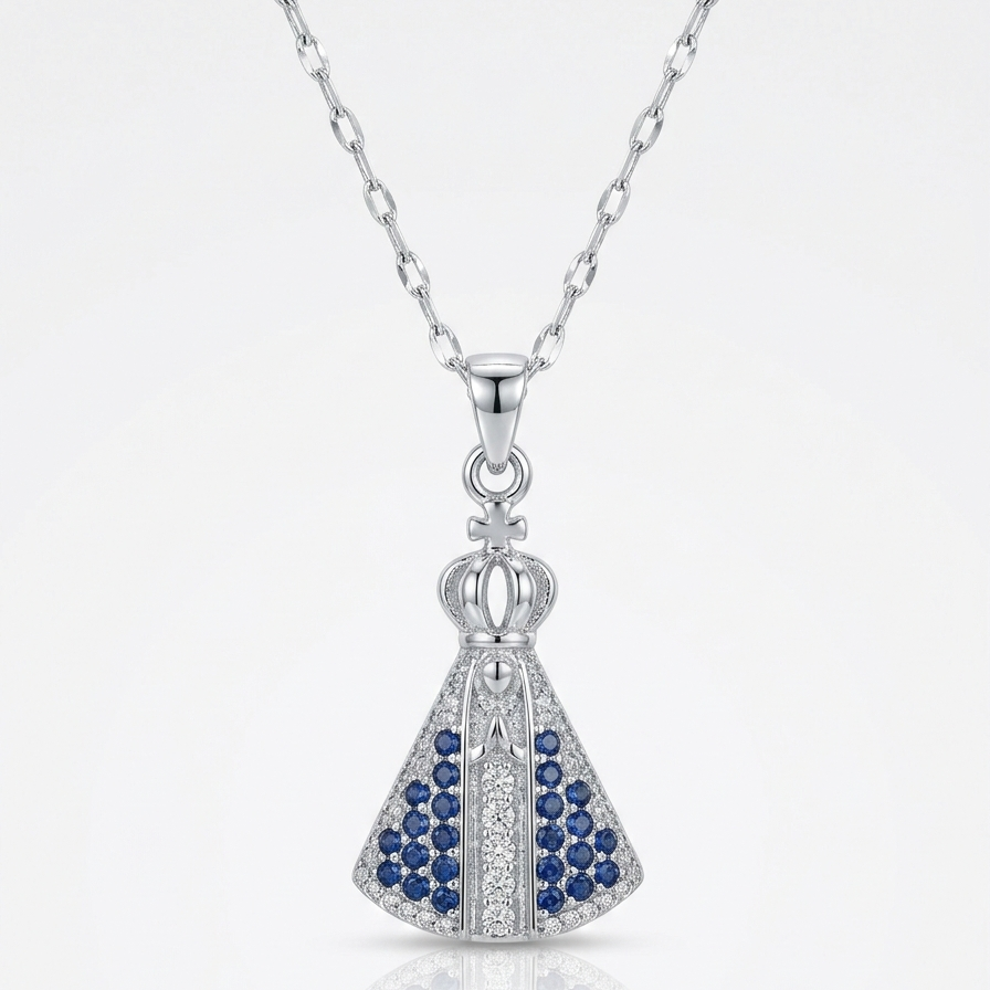 Colar em aço inox com representação de Nossa Senhora Aparecida, padroeira do Brasil. O design cravejado apresenta detalhes refinados que realçam a devoção e elegância. Confeccionado em aço inox, oferece durabilidade e resistência à corrosão, mantendo o brilho por longo tempo. Ideal para uso diário ou ocasiões especiais, combina fé e estilo em uma peça versátil. Perfeito como presente significativo para devotos ou colecionadores de joias religiosas.