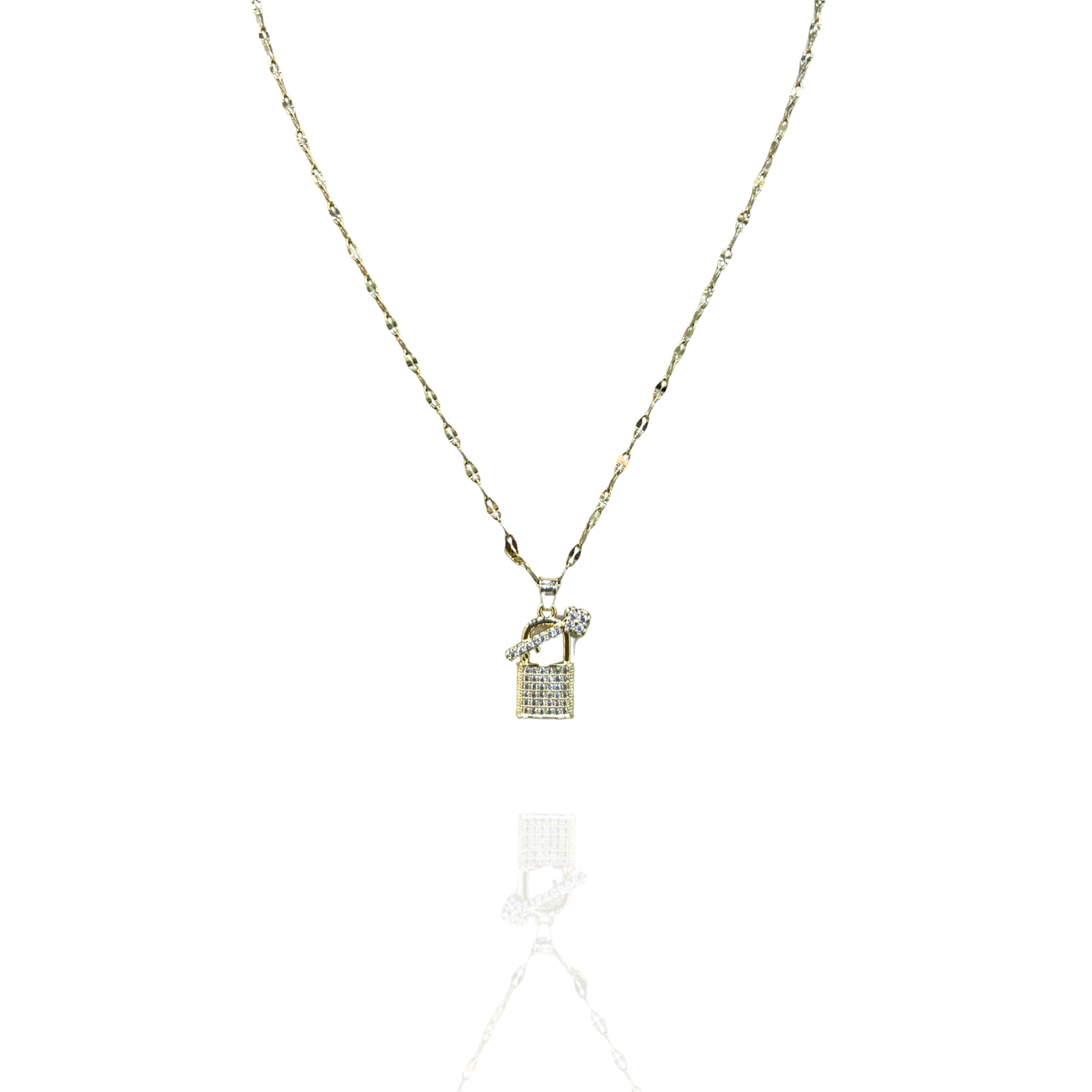 Colar com pingente de cadeado e chave Dourado - Aço Inoxidável